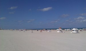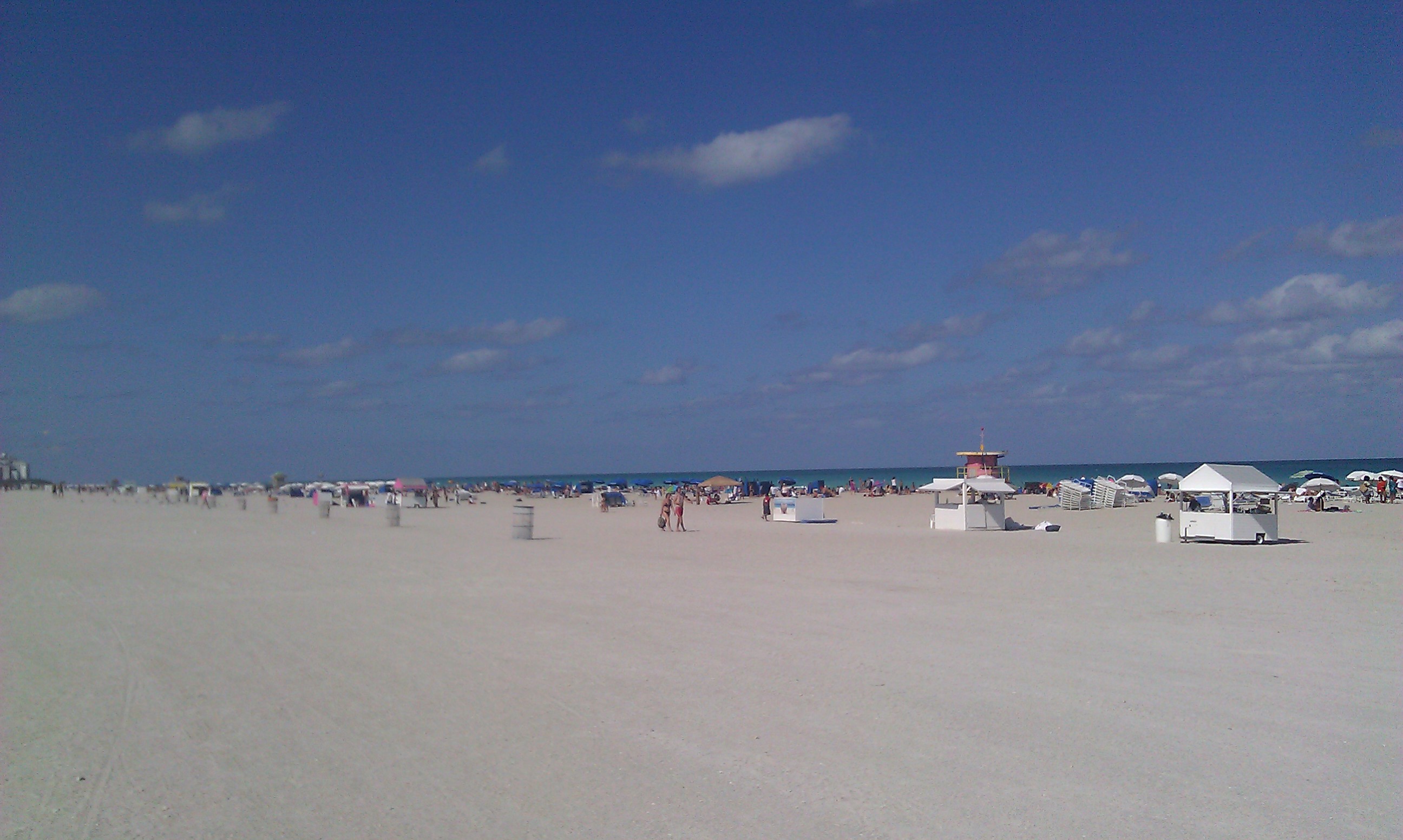 Ich sitze gerade vor unserem Hotel in Miami Beach, lasse mich von der Musik von drinnen beschallen und beobachte nebenbei das bunte Treiben in unserem tüchtigen Viertel. Der erste Eindruck von Miami ist der einer pulsierenden Metropole. Aus jedem Geschäft, egal ob Shoppingtempel oder Snackbar dröhnt die Musik genauso wie aus den vorbeifahrenden, gepimpten Autos. Auch die Menschen sind ziemlich laut, selbst wenn sie sich nur normal unterhalten.