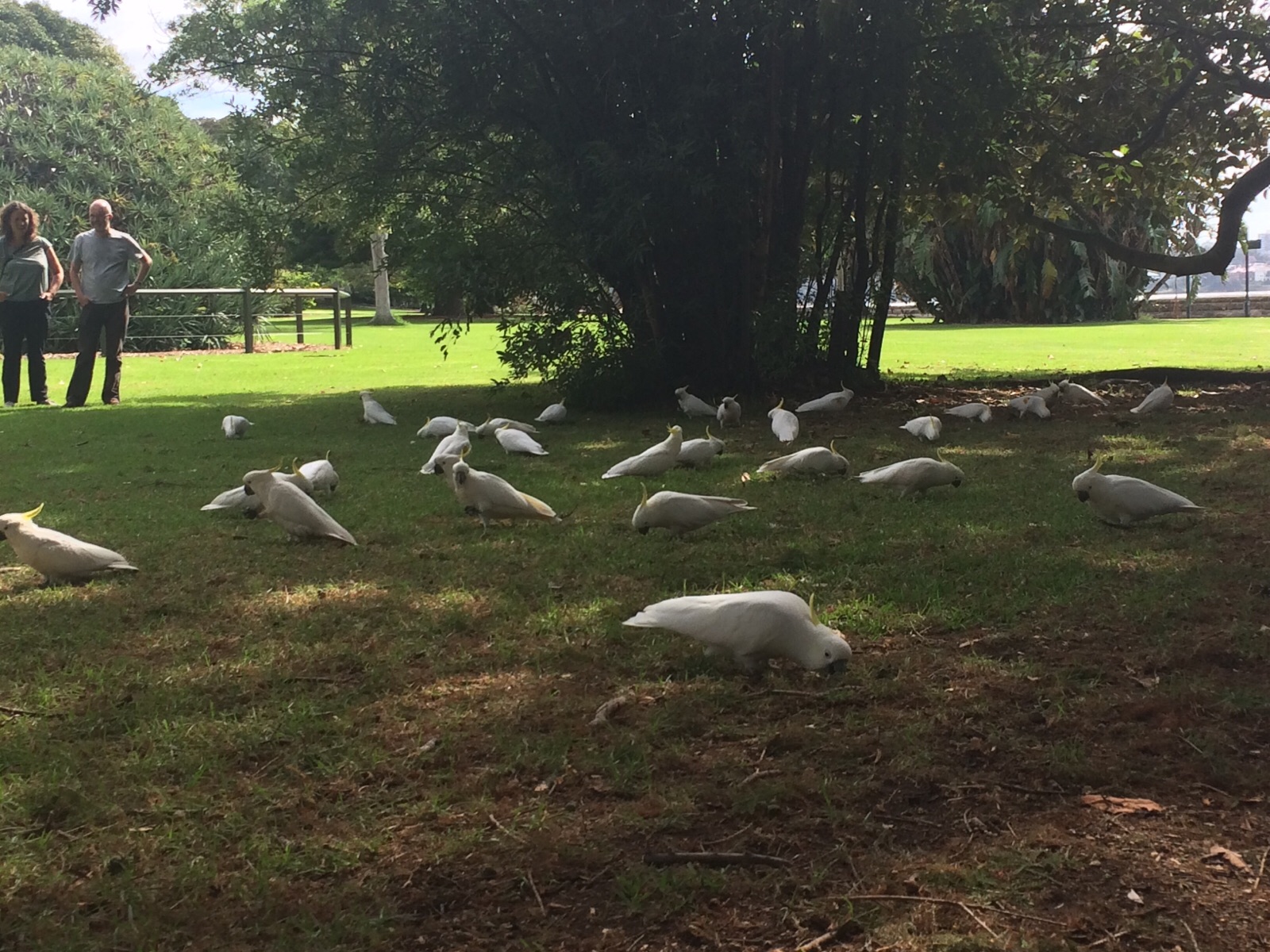 Zum Frühstück wollten wir uns heute wieder einmal ein wenig mehr Zeit nehmen und so holten wir uns im Café innerhalb des Royal Botanical Garden Pancakes und Croque Madame, ein Toast mit Schinken, Käse und Spiegelei. Die verschiedenen Vogelarten haben ihre Scheu vor Menschen schon lange hinter den Fressinstinkt gestellt und somit schrecken sie auch nicht davor zurück, bis direkt zum Tisch zu kommen, um nach Futter zu suchen. Die Vögel mit den langen Schnäbeln rennen übrigens in der ganzen Stadt herum, egal ob in einem Park, beim Wasser oder einfach auf der Straße. Doch auch ein ganzes Popscherl voll Kakadus fühlt sich in der floristischen Vielfalt sichtlich wohl. Wenn die ganze Gruppe der frechen Vögel, die auch nicht davor zurückschrecken andere Besucher mal in die Zehen zu beißen, aber anfängt zu schreien, ist es besser weit weg zu sein.