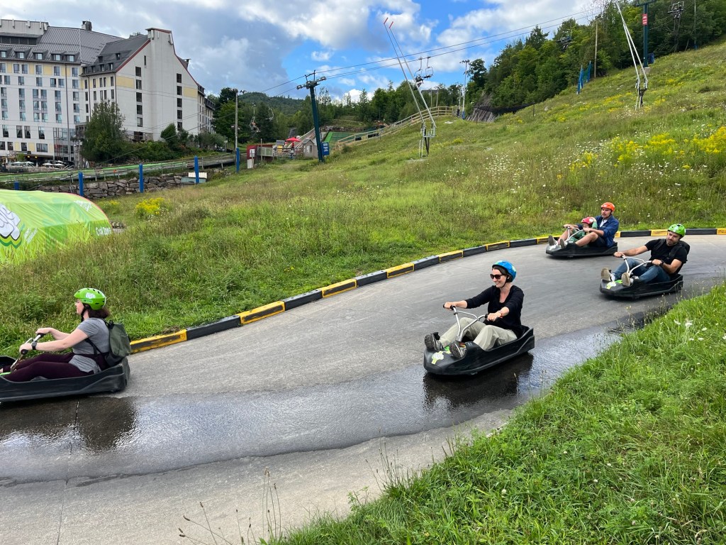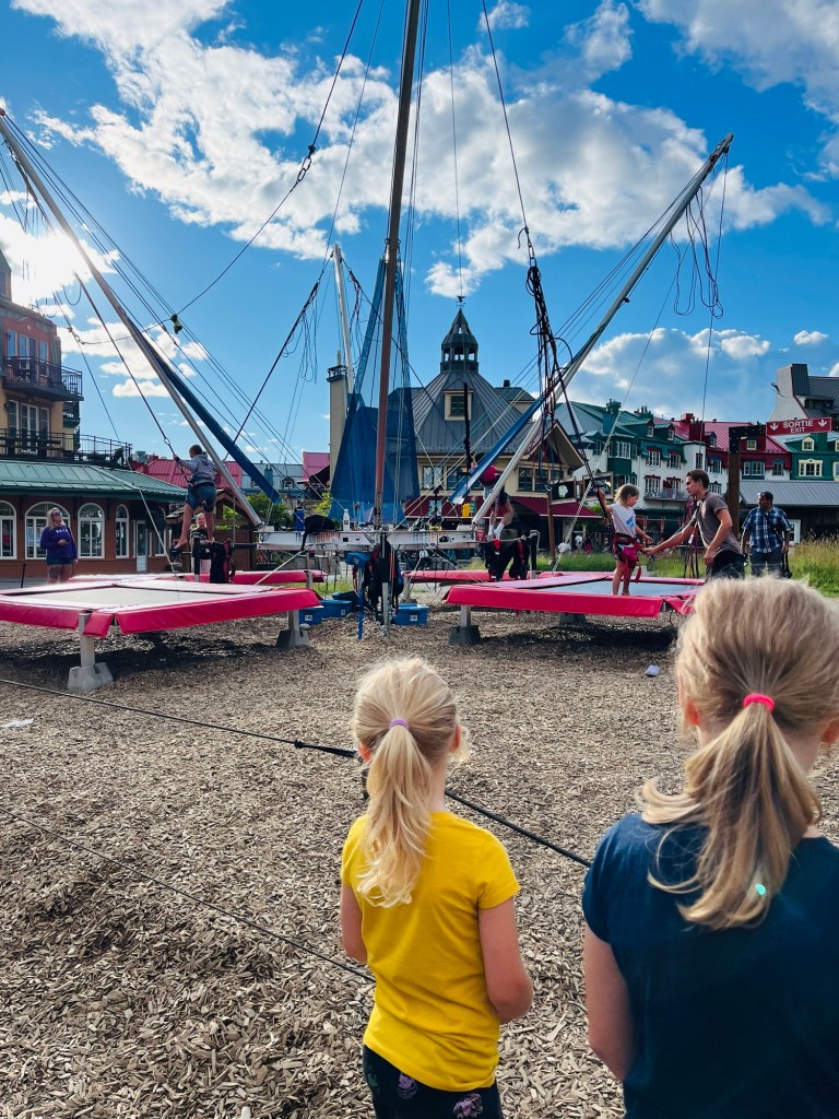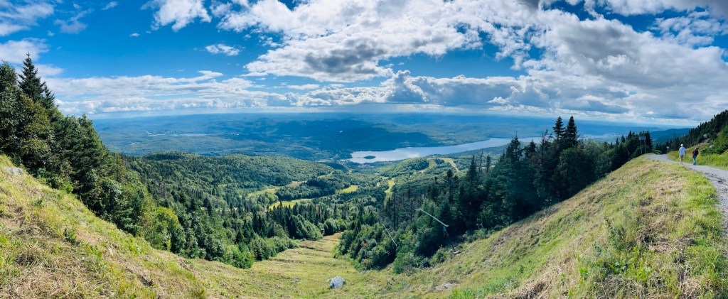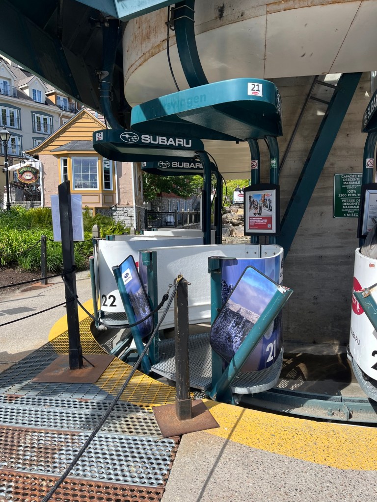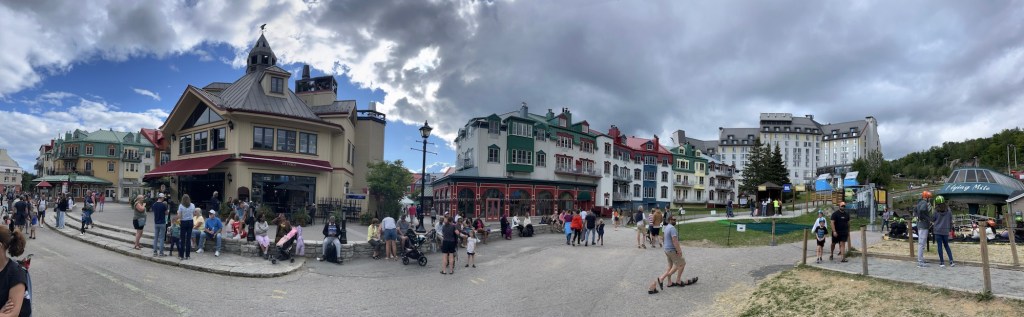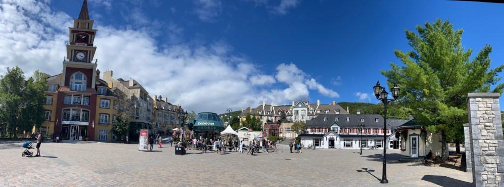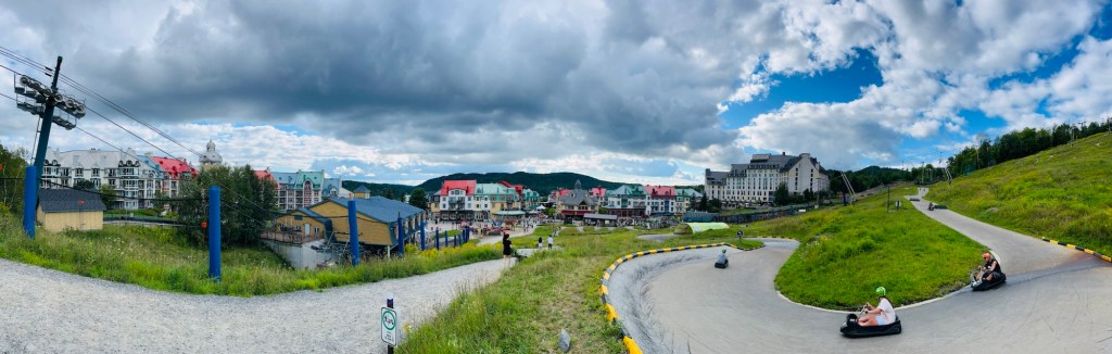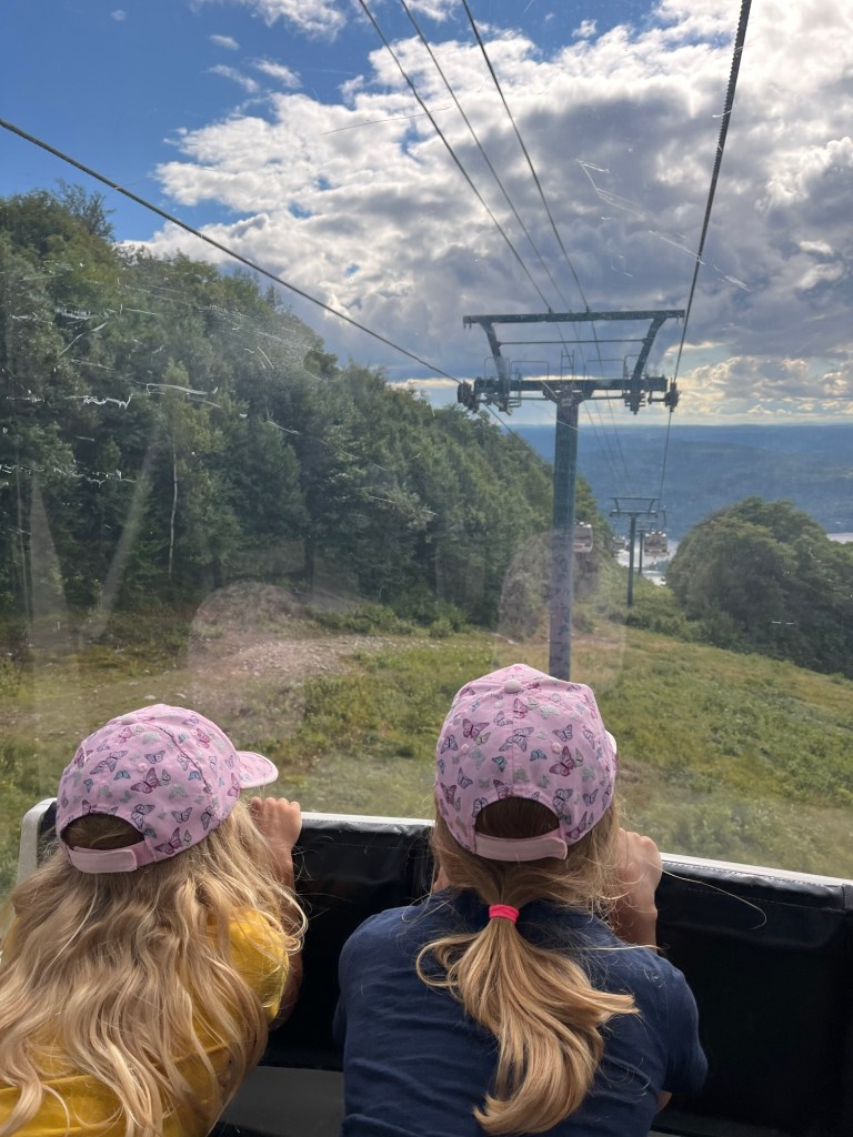 Nachdem die Kids kurz nach dem Starten des Motors wieder eingeschlafen waren, kürten wir heute ausnahmsweise keinen Gewinner. Unterwegs kam es immer wieder vor, dass uns ein oranges Straßenschild förmlich anschrie, dass die Straße gesperrt wäre. Die Umleitungen waren teils gut ausgeschildert, teilweise gar nicht. Absolutes Lowlight war die Ausweichroute über eine Schotterstraße, bei der selbst mir übel wurde. Die Schlaglöcher waren so tief, dass sich Julia heißes Wasser einlassen und ein Private Spa daraus hätte machen können. Ich hatte ein wenig Angst um unser Auto. Also eigentlich nicht ums Auto, sondern vor der Rechnung, die wir präsentiert bekommen würden, sollten wir es schrotten. Abgesehen davon, dass es dank fehlenden Empfangs nicht möglich gewesen wäre, Hilfe zu rufen. Durch die ganzen Sperren haben wir in Summe dann statt unter drei, knappe viereinhalb Stunden gebraucht, was mich massiv nervte, da ich eigentlich nicht schon wieder so viel Zeit im Auto verbringen und sie sinnvoll nutzen wollte. Da machte dann selbst mir das Autofahren keinen Spaß mehr und ich war froh, mit einer Menge Verspätung endlich am Parkplatz des Mont Tremblant angekommen zu sein.