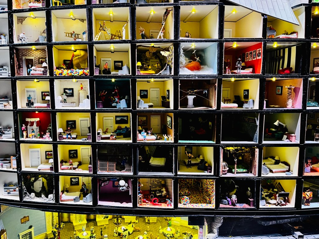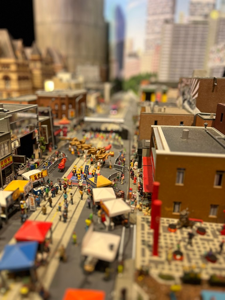Unser nächstes Ziel war Little Canada, einem Miniatur-Wunderland direkt gegenüber an der Yonge Street, Ecke Dundas, was wie bereits erwähnt eine Art Little Times Square ist. Wir wunderten uns schon, warum immer und überall die Yonge Street präsent war, auf der wir bisher jeden Tag in Toronto landeten. Eine kurze Recherche ergab, dass es sich bei dieser Straße um die längste der Welt handelt. Sie hat eine stattliche Länge von 1.896 Kilometern und steht damit sogar im Guiness Buch der Rekorde. Aber zurück zur Mini-Welt. Ich war anfangs ein wenig skeptisch. Wird es so geil wie in Hamburg? Oder wird es eher so ein Reinfall wie in Wien? Aber schon der erste Raum zeigte, dass es eher in Richtung Hamburg ging! Die unterschiedlichen Provinzen und Städte Kanadas wurden mit einer unglaublichen Detailtreue und Liebe zu Feinheiten nachgebaut. Egal wohin man sah, überall entdeckte man kleine Figuren, die etwas besonderes machten, versteckte Aktivitäten in den Fensterscheiben, Aufschriften auf Plakatwänden, die uns zum Schmunzeln brachten.